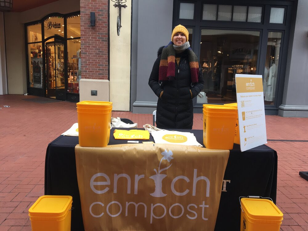 I’ve got exciting news for you. Your city is on the forefront of progress. Did you know this? In the past, composting services have been focused on serving commercial businesses, but in the last three years multiple options for convenient residential compost pick-up have developed in Richmond. On September 28th I was able to speak with the founder of one. Enrich Compost is a company offering residential compost pickup with weekly and bi-weekly options at a monthly rate. They offer group discounts too so if you and 2+ neighbors sign up in the same week, you all get a significantly discounted rate, 40% off! They even service weddings and events. If you own a business, they offer business pick-up as well and will give you a free trial week. Enrich Compost provides the buckets, cheerful 4-gallon yellow containers with lids and the Enrich Compost logo on the side. You may have already noticed them around your neighborhood and if you’ve noticed the buckets, then maybe you’ve also noticed an equally cheerful, somewhat tall individual, driving around in a Subaru picking those buckets up and dropping off new ones. That would be Mx. Kelsey Ryan.